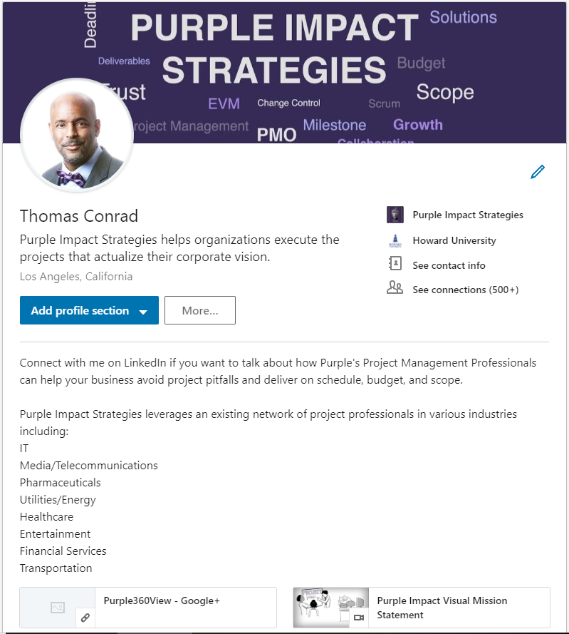 Updated website, social media management, social media profile optimization, content creation, social media copywriting for LinkedIn, Twitter, and Google+ (no longer available).